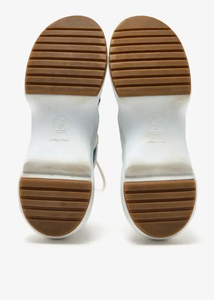 The Louis Vuitton Archlight sneaker features a bold, contemporary design with its signature oversized wave-shaped sole. Crafted from iconic LV monogram denim and smooth white leather, this sneaker combines luxury with street-style appeal. It offers a lightweight feel, cushioned comfort, and a distinctive high-fashion silhouette, finished with subtle LV branding for a premium look. Perfect for elevating casual and sporty outfits.