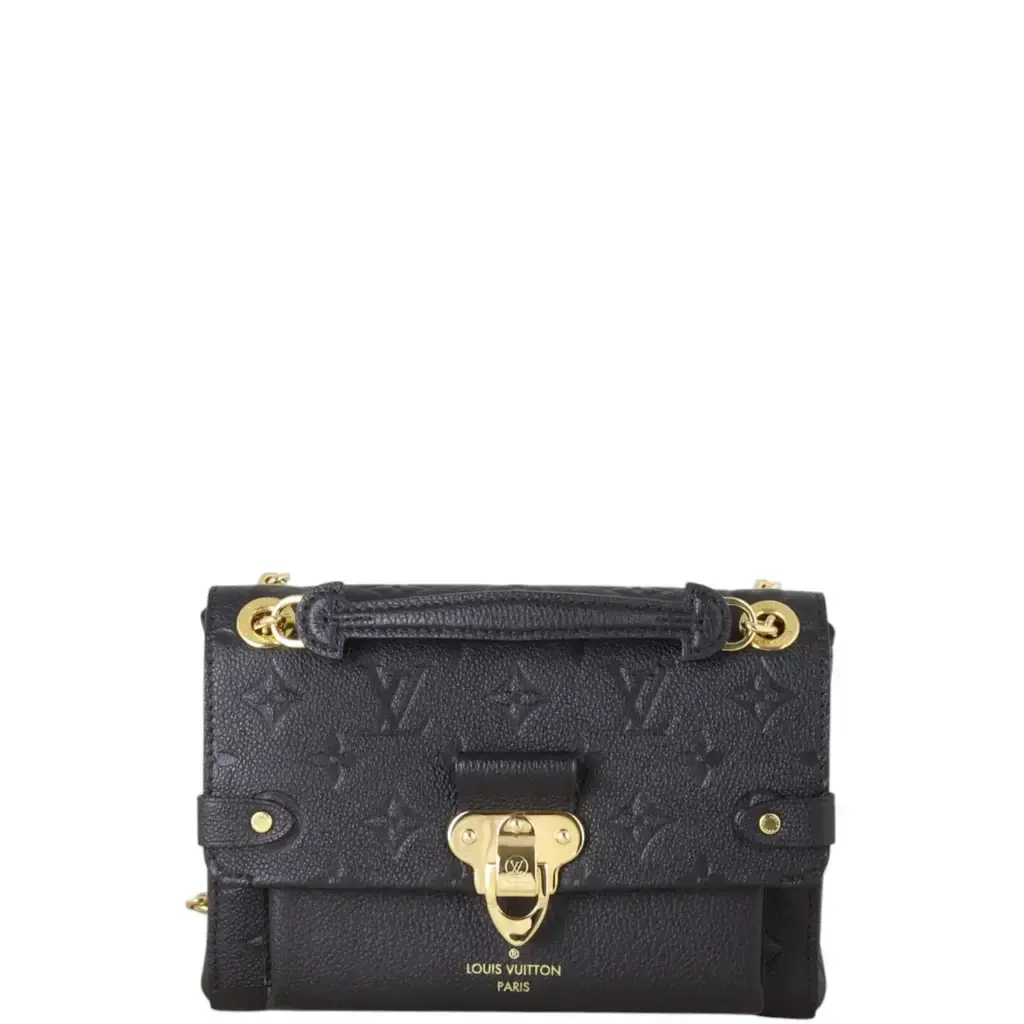 A timeless black handbag that brings effortless elegance to any occasion. Its embossed monogram leather adds a luxurious feel, while the gold chain strap enhances its chic look. Compact yet practical, it carries your daily essentials with ease.