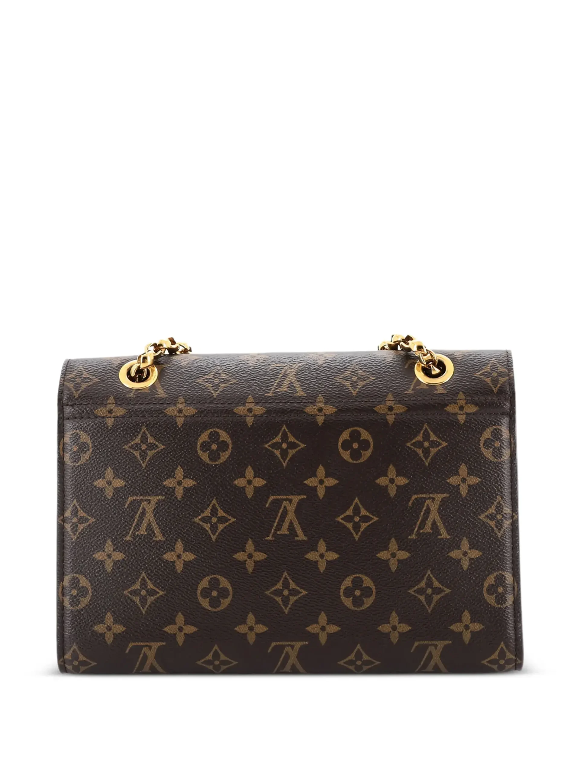 Louis Vuitton (LV) Victoire medium Victoria cowhide leather presbyopic patchwork shoulder bag with hook buckle ~ The bag has signs of normal use, slight wear on the corners, slight scratches on the hardware, stains and scratches on the body and lining, and is in good condition. Good), before purchasing: (If you need simple cleaning and recoloring of minor flaws) you can contact me.